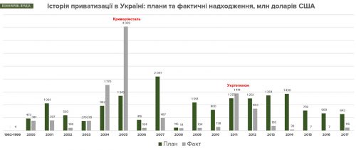 В 2017 году поступления от приватизации выросли и за девять месяцев составили 3,3 млрд грн. Они почти полностью были получены от продажи миноритарных пакетов в пяти облэнерго Ринату Ахметову, который владел их мажоритарными пакетами.