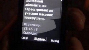 В ночь с 20 на 21 января на номера мобильных телефонов митингующих, находящихся на улице Грушевского, приходилианонимные SMS-сообщения о фиксации их как "участников массовых беспорядков". В сообщениях сказано: "Уважаемый абонент, вы зарегистрированы как участник массовых беспорядков".