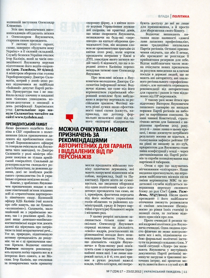 Напомним, что вчера, 17 февраля, из продажи частично изъят очередной номер журнала «Український тиждень» - № 7 (224) за 17-23 февраля.