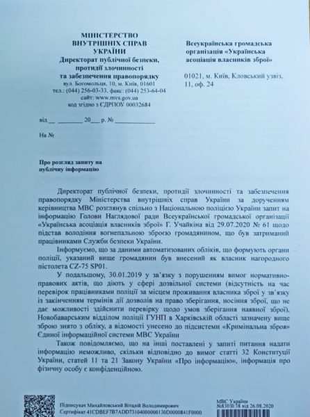 1. МВД осуществляет учет наградного оружия вопреки ответам Министра Авакова, что учет наградного оружия не ведется.