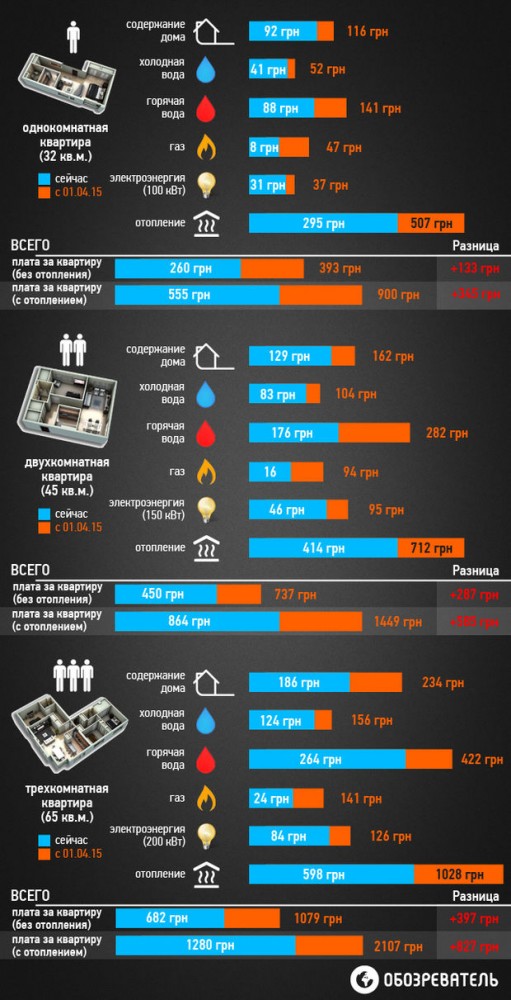 С 1 апреля 2015 года основные составляющие в коммунальном платеже повысятся следующим образом: