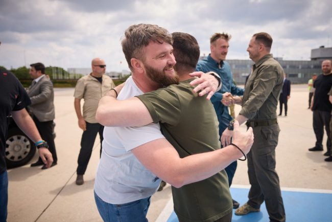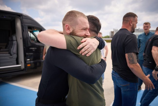 В Украину вернули командира отдельного отряда специального назначения Национальной гвардии «Азов» Героя Украины Дениса Прокопенко, его заместителя Святослава Паламаря, исполняющего обязанности командира 36-й отдельной бригады морской пехоты Сергея Волынского, старшего офицера «Азова» Олега Хоменко и командира 12-й бригады Нацгвардии Дениса Шлегу.