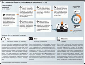 Ключевые игроки на «рынке» снятия личной информации об украинцах — Департамент оперативно-технических мероприятий СБУ и Департамент оперативной службы МВД. Основная масса записей разговоров граждан появляется у оперативных сотрудников при помощи стационарных устройств «прослушки» мобильных и городских телефонов. Еще в 2003 г. Закон «О телекоммуникациях» обязал операторов связи за собственные средства устанавливать у себя автоматическую систему снятия информации. Она позволяет оперативникам «писать» телефонные разговоры граждан прямо «на рабочем месте» — в соответствующих подразделениях. Есть в арсенале силовиков и более громоздкие технологии. Например, выездные комплексы GSM- и радиоперехвата, в которых людям в наушниках (на профессиональном сленге — «чебурашкам») приходится безвылазно дежурить под окнами «объекта» сутками. Либо оборудование, требующее незаметной установки в кабинете или квартире подозреваемого. В любом случае эта аппаратура работает только в непосредственной близости от прослушиваемого и потому в общих масштабах «прослушки» дает гораздо меньше информации, нежели спецтехника, установленная прямо на «железе» мобильных операторов.