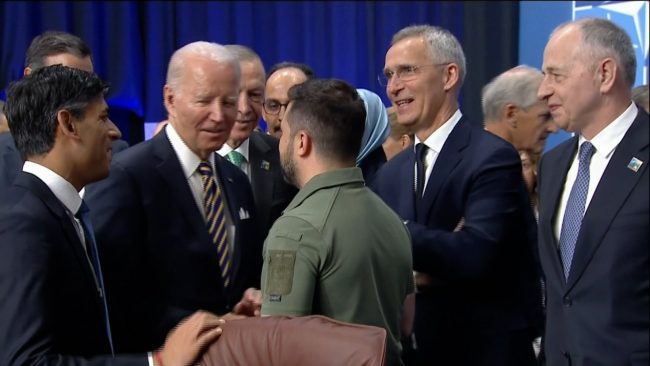 «Президент Джо Байден и президент Украины Владимир Зеленский пожали друг другу руки в начале сегодняшнего заседания Совета Украина-НАТО в Вильнюсе, Литва», – написал журналист CNN.