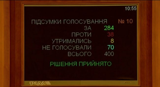 В частности, за документ №1030 в первом чтении и за основу проголосовали 276 парламентариев, свидетельствует официальный сайт Верховной Рады.