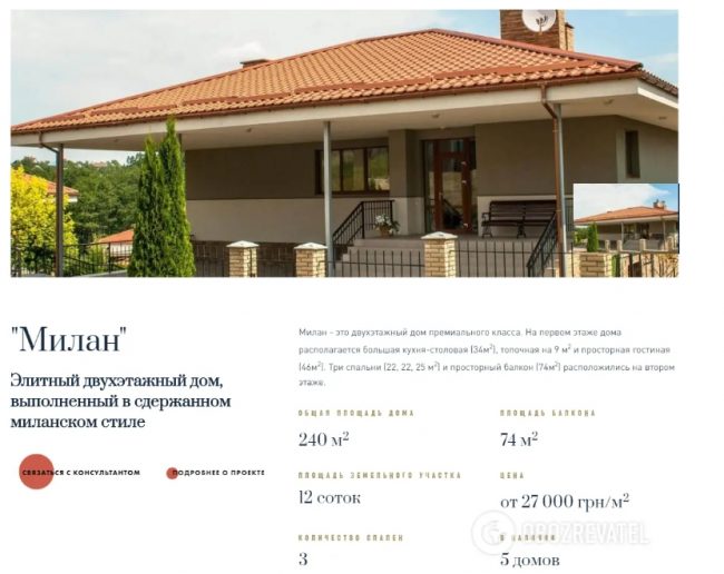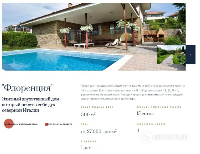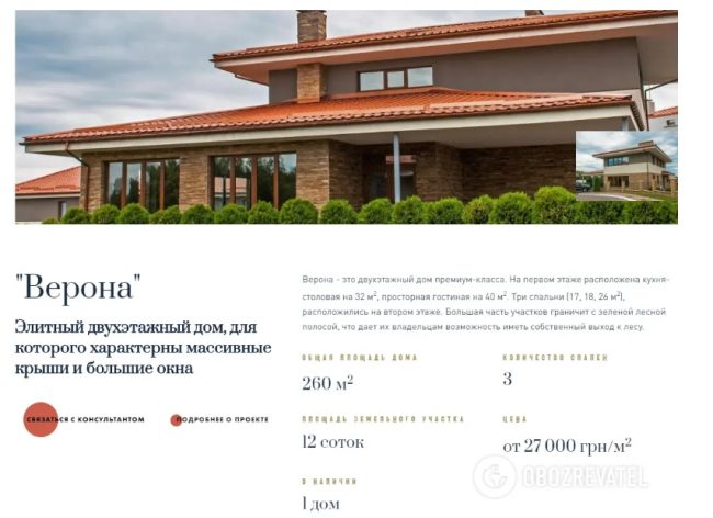 На сайте «Маєтка» есть пару доступных вариантов. Их цена достигает от 1 тыс. долларов за квадратный метр. Таким образом за $340 тыс. можно купить участок 12 соток и дом, площадью – 344 кв.м, но без отделочных работ.