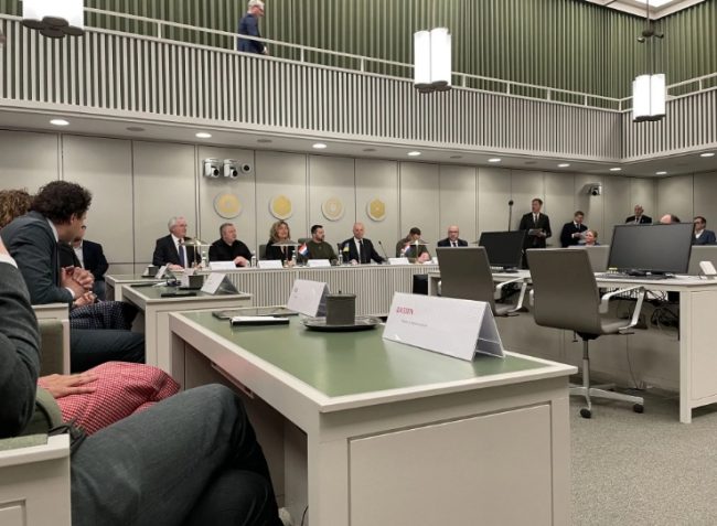 Глава украинского государства поблагодарил голландцев за поддержку, такую как предоставление бронированных гаубиц. Также Зеленский отметил, что доволен тем, что Нидерланды не исключают отправку в Украину истребителей F-16. Когда президент зашел в зал пленарных заседаний Сената, ему аплодировали стоя.
