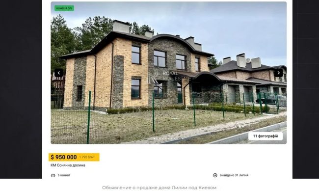 Лилия Батырсултанова, жена бенефициара компаний-поставщиков древесины для харьковских фортификаций, в марте 2024 года приобрела роскошное здание под Киевом рыночной стоимостью 950 000 долларов.