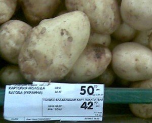 В праздник 1 мая в одном из супермаркетов Донецка 1 мая продавали молодой картофель по 50 грн 79 коп за килограмм (более $6). Об этом сообщает «Остров». Для владельцев карт покупателя сделали скидку - 42 грн 90 коп.