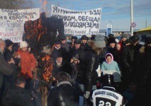 Информационному порталу job-sbu.org стало известно, что сегодня жители Бахчисарайского района в знак протеста перекрыли трассу Севастополь-Евпатория. Так же они зачитали резолюцию и подожгли чучело рейдера. Как известно, люди устраивают митинги из-за того, что у них агрофирма «Крым» через суды отбирает землю.