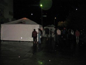 Напротив райотдела установили две палатки для обогрева людей. Людям наливают кофе и чай. Народный депутат Николай Катеринчук принимает заявления от пострадавших после вчерашнего штурма.