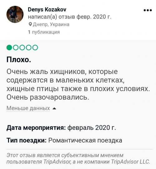 По этой ссылке можно ознакомиться с мнениями отдельных посетителей экопарка о реальном положении дел в зверинце Фельдмана.